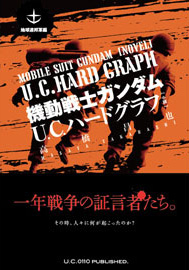 『U.C.HARD GRAPH』のプラモデルの企画段階において雑誌展開や設定協力で参加させていただいていた関係で、今回の小説化のお話を頂戴しました。私はこれまでおも に雑誌や書籍の編集の仕事をしており多くの作家さんをせっついて参りましたが、今回はじめて自分自身が書く立場になり、尻を叩かれる痛みと筆の重さを痛 感……脱稿後のいまも緊張が解けません。発刊までにじつに長い期間を費やしてしまい、読者ならびに連邦軍篇の作者である高橋昌也さんにはたいへんなご迷惑 をおかけしました。この場をお借りしてお詫び申し上げます。