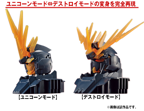The Unicorn Gundam 02 Banshee Norn plays a key role in episode 6 of Mobile Suit Gundam UC. The May issue of Hobby Japan, due out on 3/25, will include a "Unicorn Gundam 02 Banshee Head Display Base"! Recreate its iconic, leonic head! Body in dark blue and Psycoframe in clear orange!