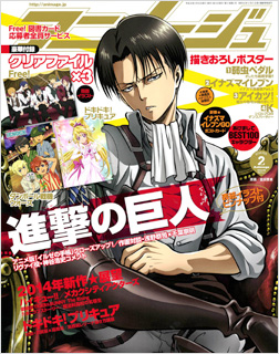 2014年最初のアニメージュは、昨年大ブームを巻き起こし、現在も勢いの衰えない『進撃の巨人』が表紙に登場です!絵柄は、思わず心臓を捧げたくなるリヴァイ兵長の単体ポートレイト♥このイラストの全身Ver.ピンナップも付いてます☆