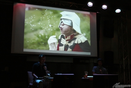 休憩を挟んでの第2部では、「シャアの日常」の単行本や「月刊ガンダムエース」などに登場する、シャアのものまねでおなじみの芸人・ぬまっちの写真を紹介するコーナーに。
