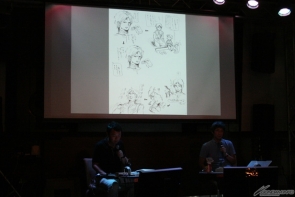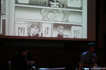 ▲月刊ガンダムエース副編集長の財前氏と、「シャアの日常」の脚本を担当する本田先生。なんと2人は大学時代の同級生であるという。