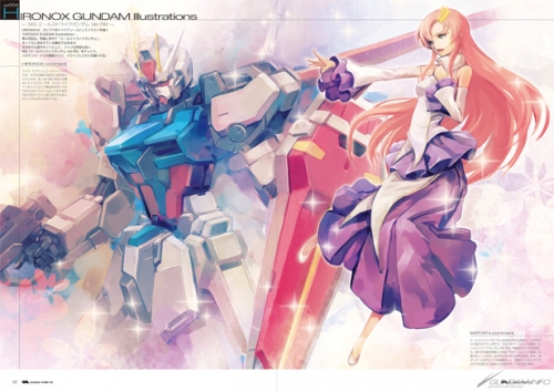 また、HIRONOXによるエールストライクガンダム&ラクス・クラインの描き下ろしイラスト、桜井信之による「モビルスーツゲイツ」に可動ギミックを仕込むハウトゥなど、各連載も『機動戦士ガンダムSEED』を題材にしている。