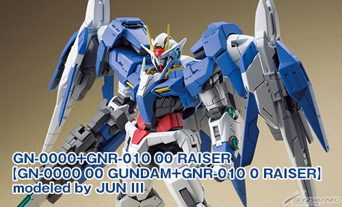 The newest Real Grade kit is Mobile Suit Gundam 00 Second Season's "GN-0000+GNR-010 00 Raiser (00 Gundam + O Raiser)", slated for April 29th release.