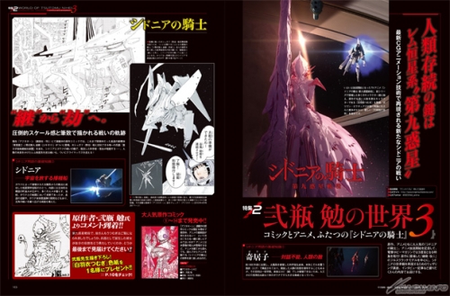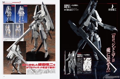 Knights of Sidonia is a hit, both as a comic and its anime adaption. To mark the premiere of a new season, Dengeki Hobby Magazine takes a third look! Focused around a scratch build of the Tsugumori Custom II, there's also how-tos on recreating the damage the Garde suffered in the show, and an interview between CG modeler Mitsunori Kataama and modeler Keita Jyubee.