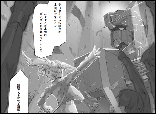 ▲ Mizuno, born as a clone soldier, has a lot in common with the Gundam-headed GM Quel (Early Hazel). Can a fake ever become the real thing?