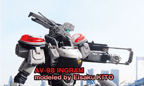 The Next Generation Patlabor: Shuto Kessen premiered May 1st. The culmination of a series of live-action Patlabor films, its climax features a clash between the Ingrams and the GSDF's "Grey Ghost" stealth helicopter. In this month's issue, Eisaku Kito, credited with Ingram molding for the films, reviews Bandai's 1/48 kit; we also take a look at his own model. The kit is packed with features designed by Kito that never made it into the final cut; how will you use them? See it side-by-side with the original build!