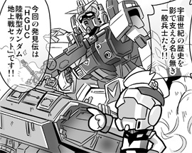 ガンダムインフォで好評連載中のレポートマンガ 「SDガンダムいんふぉ」でおなじみの森本がーにゃ先生が、毎回様々なガンプラをマンガで紹介するコーナー。第21回は「HGUC 陸戦型ガンダム 地上戦セット」を紹介する。