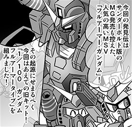 ガンダムインフォで好評連載中のレポートマンガ 「SDガンダムいんふぉ」でおなじみの森本がーにゃ先生が、毎回様々なガンプラをマンガで紹介するコーナー。第32回は「1/100 ガンダムフルアーマータイプ」を紹介する。