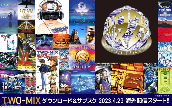 TWO-MIX sono stati responsabili di molte canzoni a tema per anime e spettacoli televisivi, tra cuiMobile Suit Gundam W, e la loro discografia diventerà disponibile per il download e lo streaming su servizi musicali in tutto il mondo.