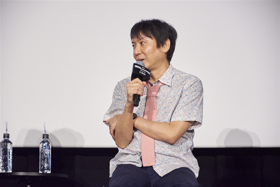 Tsurumaki: "Prima di tutto, sono grato per la ri-proiezione diInizio, dal momento che i suoi incassi al botteghino hanno superato i 3,5 miliardi di yen (grandi applausi dal pubblico). È tutto merito di tutti voi. Grazie mille. La serie TV è strutturata in un modo in cui la linea temporale salta avanti e indietro, ma ilInizioIl film che avete visto oggi è cronologicamente coerente, il che lo rende facile da capire e da guardare, quindi sarei felice se veniste a vederlo di nuovo. Grazie mille".