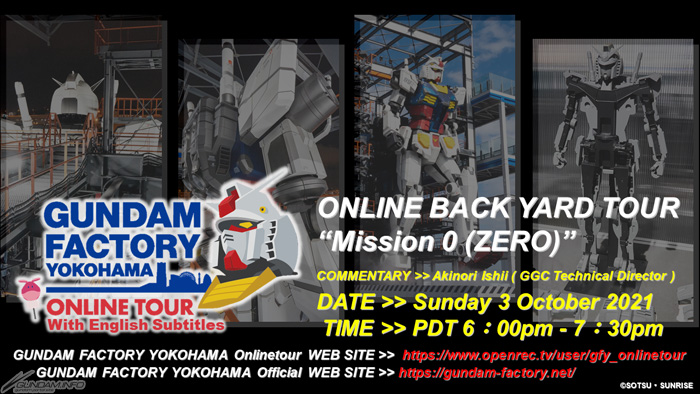 Come parte della GUNDAM FACTORY YOKOHAMA online Tours che permettono ai partecipanti di fare una sbirciata nel backstage del movimento Gundam, il tour sul retro "Mission 0" e il tour di un giorno che si tengono in passato saranno in streaming per un periodo limitato.