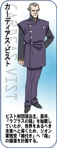 『ラプラスの箱』をもつサイアムが興した財団。連邦政府にもアナハイム・エレクトロニクス社にも強い影響力がある。現当主は孫のカーディアス。 |