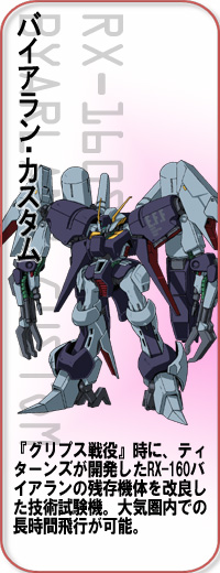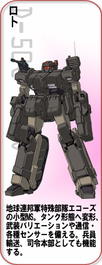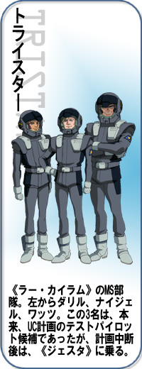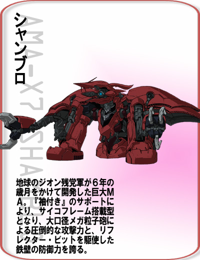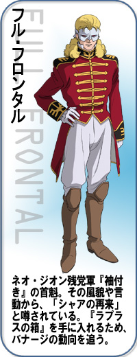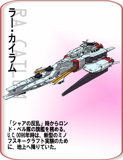 U.C.0090年に地球連邦軍内に設立された外郭新興部隊。現在もブライト・ノアが指揮を執る。ロンド・ベル隊所属の強襲揚陸艦《ネェル・アーガマ》が『ラプラスの箱』奪取の任務を受ける。 |