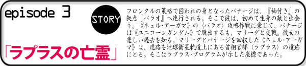 U.C.0001年に起こった爆破テロ事件で、首相官邸〈ラプラス〉は破壊された。そのほとんどは、大気圏に落下していったが、残骸の一部は低軌道上に留まり、歴史的遺産として保存された。 |