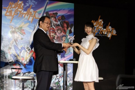 Sunrise Executive Vice President Mr. Yasuo Miyagawa took the podium to unveil the Gundam Build Fighters trailer for the first time.