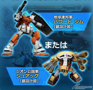 また2つ目の特典は、8月31日(土)までに、月額1,000円(税抜)で対象作品が見放題となる「バンダイチャンネル」の「アニメ・特撮見放題」サービスに登録したユーザーを対象に、「ガンダムオンライン」のアイテム「パワード・ジム(シルバー設計図)」または「ジュアッグ(シルバー設計図)」のいずれか1つがもれなくプレゼントされる。