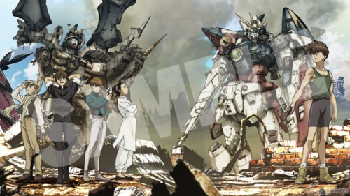 立ち昇る煙幕を背に佇む、朽ちた「ウイングガンダム0」、「ガンダムデスサイズヘル」。そしてその前に集う「ヒイロ」、「デュオ」、「トロワ」、「カトル」、「五飛」の姿が印象的なイラストだ。