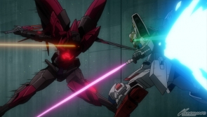 Episode 24 opens with GBC finalist Meijin Kawaguchi's Gundam Amazing Exia in a new, pitch-black color scheme...
