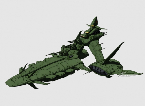 ジオン公国軍宇宙艦隊総司令であるドズル・ザビの座乗艦として、ルウム戦役において艦隊の中心となって活躍。外観は主力であるムサイ級軽巡洋艦に似ているが、艦隊旗艦としての専用設計がなされているため、ムサイ改型と呼ばれている。そのサイズはムサイ級軽巡洋艦と比較して約30パーセント大きく、戦艦クラスに匹敵。2連装メガ粒子砲も大型化されており、攻撃能力も高い。また、通信機能を強化するなど、艦隊を司る高い統制機能を持つ。