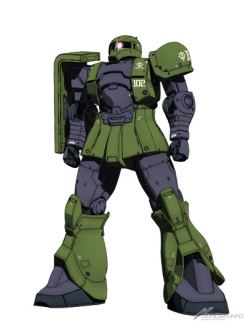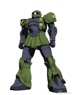 ジオン公国軍が量産化した史上初のモビルスーツ。ミノフスキー博士の理論を採用した小型融合炉を搭載することで、人型汎用兵器として完成したMS-04をベースに、生産性や整備性を重視して再設計した機体。モビルスーツを用いた兵器運用や戦略は、MS-05ザクIが生産されたことで重要度が増すことになる。ジオン独立戦争に向けて生産されたが、その後さらに完成度を高めたMS-06ザクIIが制式採用されたため、主力機としての座は奪われてしまうが、ルウム戦役をはじめジオン独立戦争の戦闘に投入され、主力であるMS-06とともに活躍した。