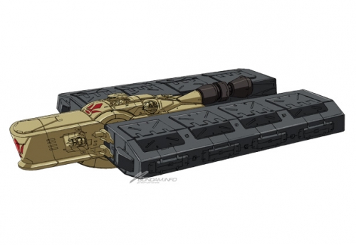 An armed transport ship belonging to Tekkadan. Originally a cargo transport ship, the ship was expanded to be exclusively used as a MS hangar due to the increase of mobile suit ownership. As a result, it is possible for the ship to transport a large quantity of mobile suits.