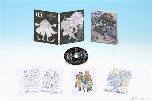 The Mobile Suit Gundam Iron-Blooded Orphans II Volume 1 Blu-ray and DVD includes 2 episodes while Volume 2 and onwards will include 3 episodes. All 9 volumes are scheduled to release monthly 2 volumes at a time. The price of the Volume 1 Blu-ray is 6,800 yen (tax excluded) and the DVD is 4,800 yen (tax excluded) while Volume 2 and onwards will be 7,800 yen (tax excluded) and 5,800 yen (tax excluded) for the DVD. DVD rentals are also scheduled to begin at the same time as each release.